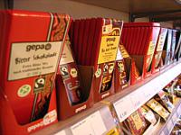 Kaffee, Kakao und Tee, Brotaufstriche, Honig, Schokolade und Riegel, Vollrohrzucker, Nüsse und Knabbereien, Trockenfrüchte, Fruchtschnitten, Gewürze, Reis-Sorten, Quinua, Nudeln, Wein und Fruchtsäfte.